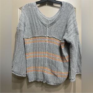 VICI Chunky Knit Striped Flare Sleeve Sweater Gray Size M