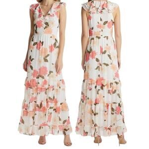 VICI Collection dress white floral print tiered chiffon