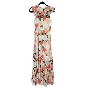 VICI Collection Womens size X-Small XS dress white floral print tiered chiffon D0906