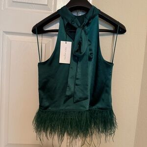 VICI Emerald Green Sleeveless Top with Feather Trim