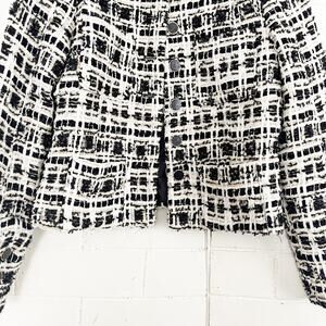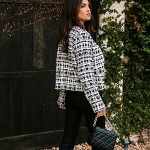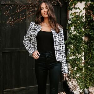 Black, white, and metallic gold Emme tweed blazer from Vici.