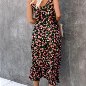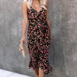 VICI Floral Chiffon Faux Wrap Ruffle Slit Hem Midi Dress size Small