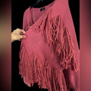 Stay cozy and stylish with this pink fringe knit sweater. Perfect for adding a touch of flair to your wardrobe.