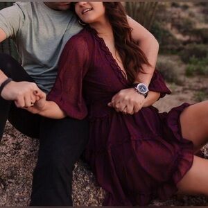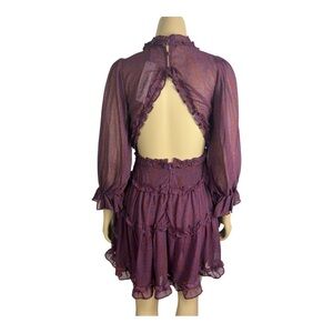 VICI Georgie Ruffle Tiered Mini Dress Deep V Purple Print Open Back NWT Sz S