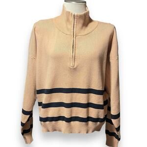 VICI Half-Zip Pullover Sweater Camel Black Stripes XL