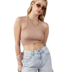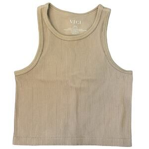 VICI Josie Ribbed Crop Stretch Tank Tan Basic Layering XS Small New