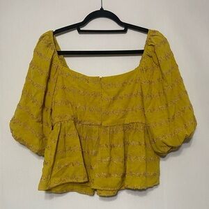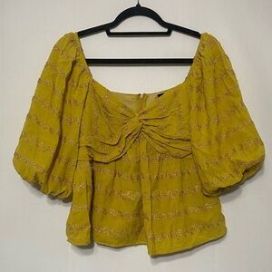 VICI LIKE NEW mustard yellow & metallic twist front puff sleeve boho blouse M