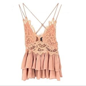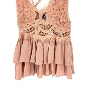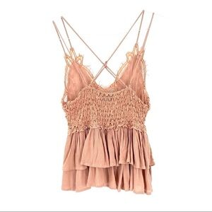 VICI Lace Smock Back Ruffle Cotton Blend Back Detail Cami