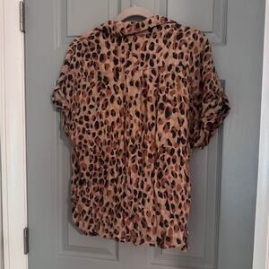 Stylish leopard print blouse with a button-up front. Perfect for a chic and trendy look.
