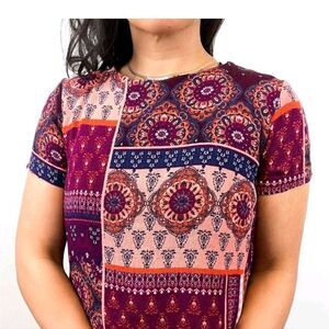 VICI Mix Boho Prints Short Sleeve Dress W Pockets Visible Back Zipper Size M