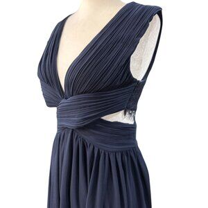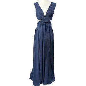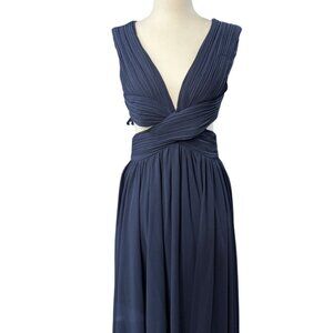 VICI Navy Blue M Shimmer Chiffon Ruffle Cutout Maxi DRESS $168 Cross-Over Bodice