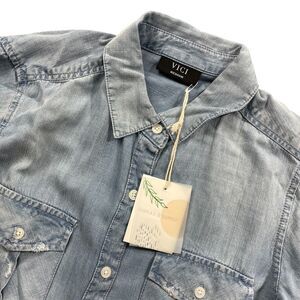VICI New w/ Tags Medium Womens Roll Up Long Sleeve Button Up Distressed