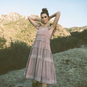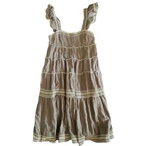 VICI | OLIVACEOUS Dark Gray Tiered Ruffle Tank Top Embroidered Long Midi Dress