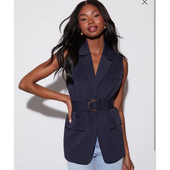 VICI Olia Navy Belted Blazer Vest Jacket Top Size XS