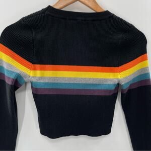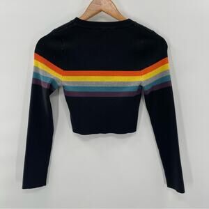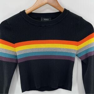 VICI Rainbow Stripe Y2K Grunge Skater Cropped Sweater Size Small Indie Rave