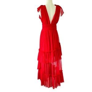 VICI Red Carrie In Paris Tiered Polka Dot Tulle Midi Dress Small