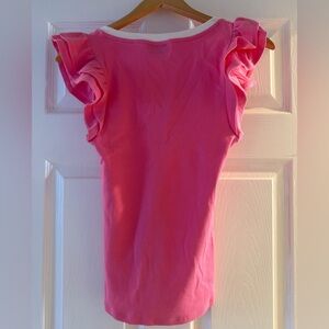 Bright pink tank with a stylish white V-neck trim. NWOT Size: Medium