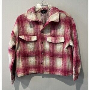 VICI Shacket Women’s Medium Harper Pink Plaid Fuzzy Crop Shirt Jacket Button Up