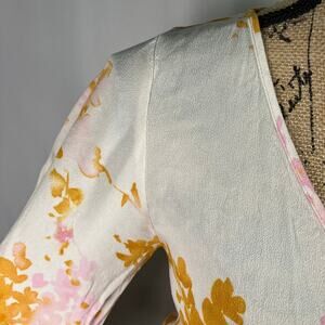 VICI Small Wrap Maxi Dress Floral Pink Yellow Belted Long Sleeve Rayon Wedding