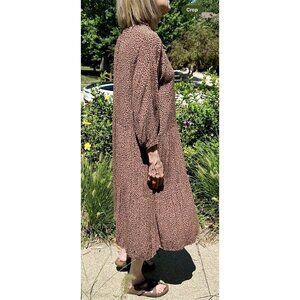 VICI Tiered Midi Dress Size Medium Tan/Black Leopard/Cheetah Print Tie Front
