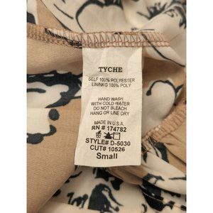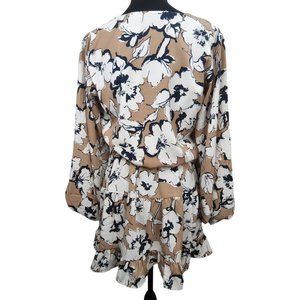 VICI Tyche V-Neck Mini Dress Size Small Beige w/ White Flowers Long Sleeve Ruffle Skirt.