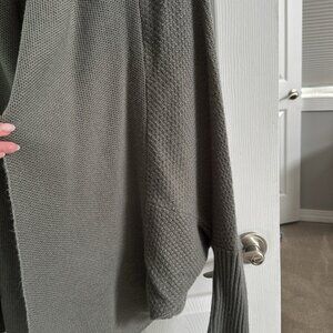 Embrace the cozy elegance of the Wishlist gray cardigan, designed with an open front and a flowing shawl collar. This lightweight knit piece offers a relaxed fit, perfect for layering over your favorite outfits. Its versatile style makes it an essential addition to any casual wardrobe. Size is Medium/Large