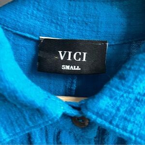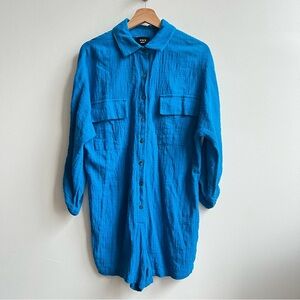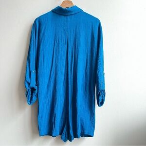 VICI Womens Blue Long sleeve 100% Cotton Button down romper Size Small beach