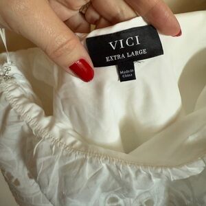 VICI Women’s Eyelet White One Shoulder Ruffle Top Feminine Beach Extra Large