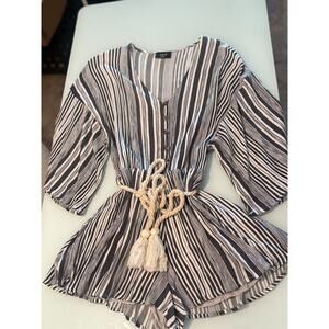 VICI Women's Kimono Sleeve Striped Boho Romper Size Small 0-4