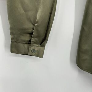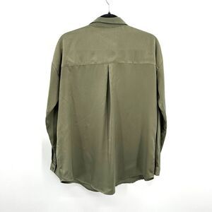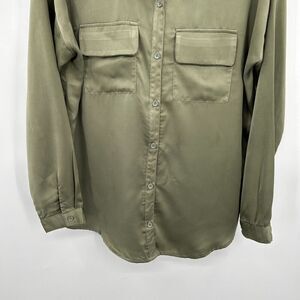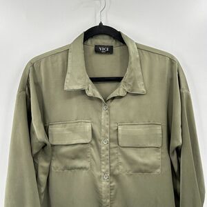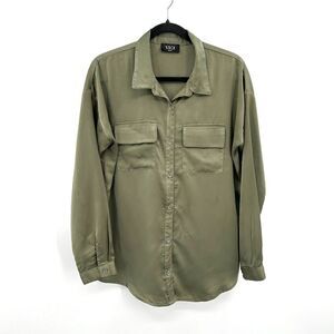 VICI Women's Olive Green Satin Oversized Long Sleeve Button Up Blouse Medium