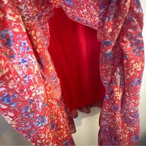 VICI Women's Santana Floral Tiered Off Shoulder Midi Dress Sz Medium Red Boho