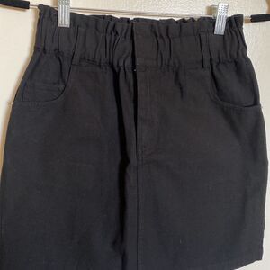 VICI- Tess Pocketed Paper Bag Waist Denim Skirt - Black -Size Small