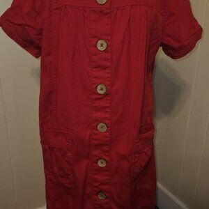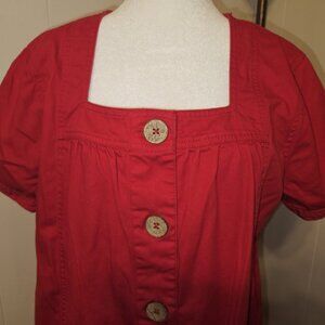 VICKI BLUE Red Short Sleeve Denim Dress Ladies Large Petite Square Neckline