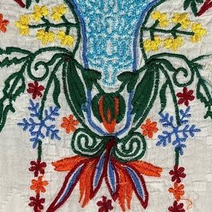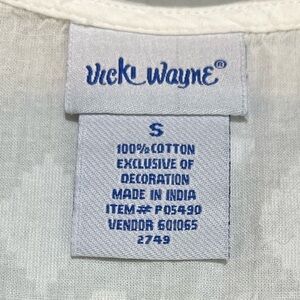 VICKI WAYNE Embossed Vine White Tunic w/ Colorful Floral Embroidery Size Small