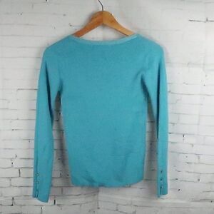 AQUA BLUE V NECK LONG SLEEVE RIBBED KNIT SWEATER WITH SPARKLE TRIM DETAIL SIZE 2/SMALL PRE OWNED NO FLAWS
