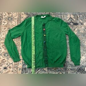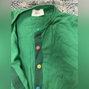 VICOLO Green cardigan, assuming women’s size xs/s, no size shown on tag, smoke free home, in preowned condition, perfect for St. Patrick’s day! Made in Italy. 100% cotton.