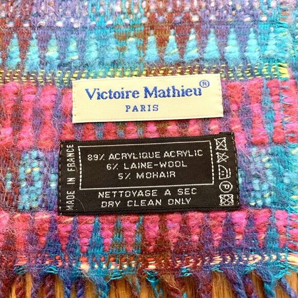 VICTOIRE MATHIEU Paris VTG Pink/Blue Soft Wool/Mohair Blended Scarf w/ Fringe