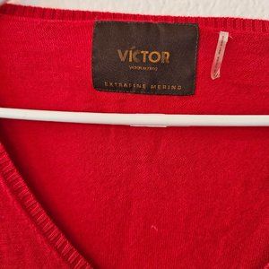 VICTOR Alfaro - Extra Fine Merino - Red Sweater - V Neck - Size XL