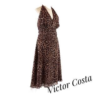 VICTOR COSTA Animal Print Halter Dress Size 10 Backless Flowy Lightweight