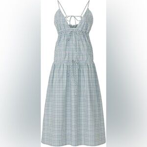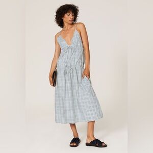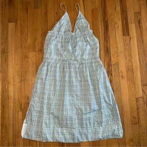 VICTORIA BECKHAM Check Print Tie Dress Maxi Blue Green size 6