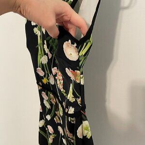 VICTORIA BECKHAM FOR TARGET English Floral Satin Dress Black Green Mini ALTERED