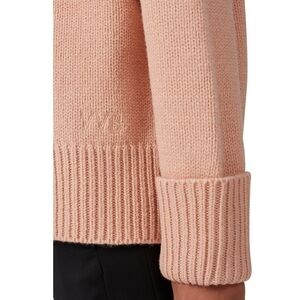 Light pink heavyweight knit. 100% Lambswool. Long sleeves. Ribbed cuffs, hem, and neck. Loose fit. Tunic length. Turtleneck. Tonal monogram embroidered logo.