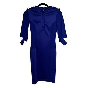 VICTORIA BECKHAM Cobalt Blue 3/4 Sleeve Cotton Sheath Dress Small