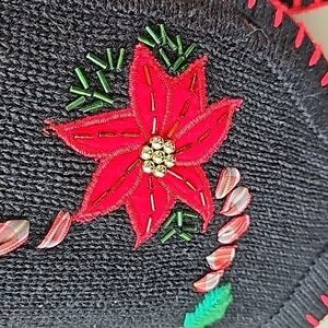 Beautiful sweater vest, covered buttons. Red enbroidery poinsettia all around it. Great used condition and quality. Size small. However, it looks like it may fit a medium. Pit to pit flat measurement is 19". Top to bottom length is 22". Consider making a bundle and get an even better offer.