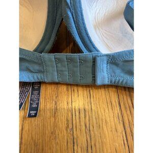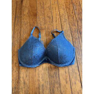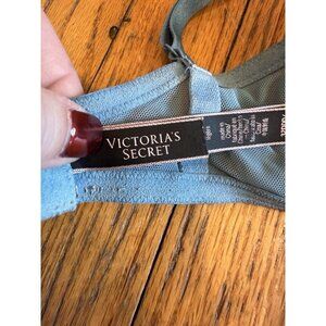 Elevate your lingerie collection with this Victoria's Secret Bombshell Bra. The very sexy lightlined plunge bra with shiny straps will make you feel confident and chic. The hook and eye closure ensures a secure fit while the underwire support provides added lift. The solid blue color and lace fabric with a bombshell theme make this bra a must-have for any fashion-forward woman.