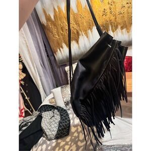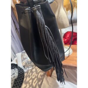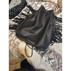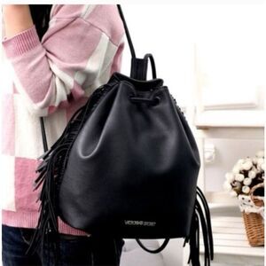 Victoria’s Secret Fashion Show Fringe Backpack Faux Leather backpack tote bag Black faux leather with fringe.