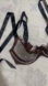 Rhinestone quarter cups. Ribbon straps with bows. Boning for support.