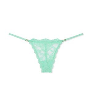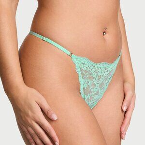 VICTORIA SECRET Dream Angels V-String Thong Panty SZ L Aqua Blue Lace Waterfall