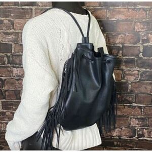 VICTORIA SECRET Faux Leather Black Backpack Fringe Purse SEXY Boho Bag MSRP $85.