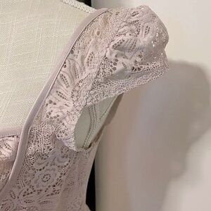 VICTORIA SECRET LACE CAP SLEEVE BODYSUIT WITH MESH BACK LAVENDER SIZE MEDIUM
